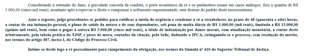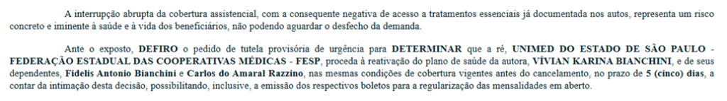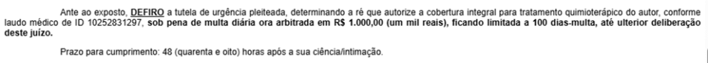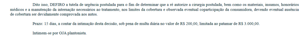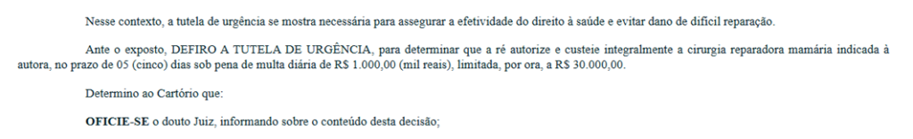 Em casos envolvendo saúde, esses dois requisitos costumam ser facilmente demonstrados. Uma vez concedida, a liminar é comunicada ao plano de saúde, que tem obrigação legal de fornecer o tratamento imediatamente, sob pena de multa diária (chamada de astreintes).