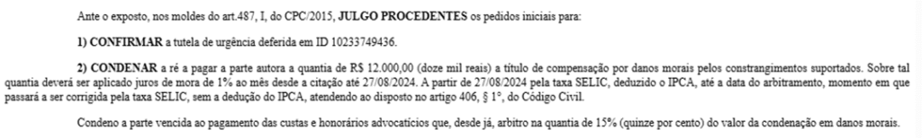 E quanto à indenização por danos morais?